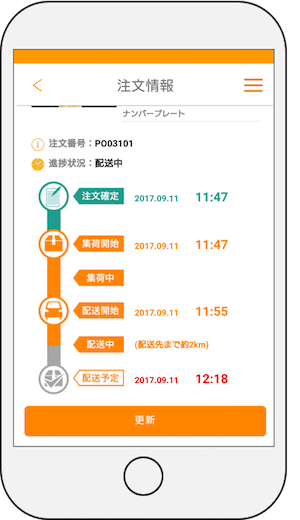 お客様の欲しい商品が在庫切れの時に、希望時間に合わせて在庫がある他店舗や倉庫に運送者を呼んでください。